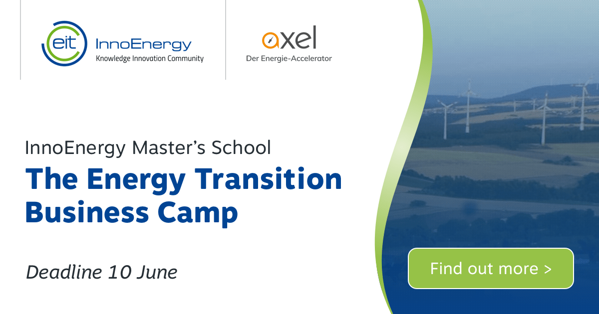 InnoEnergy's Master School organisiert gemeinsam mit AXEL - Der Energie-Accelerator das viertägige "The Energy Transition Business Camp" vom 26.-29. Juli 2018 in Karlsruhe. Die Teilnehmer arbeiten im Rahmen von Workshop- und Coachingeinheiten an ihren innovativen Geschäfts- oder Projektideen, die sich um Energieprodukte und -dienstleistungen drehen. Dabei werden sie herausgefordert ihre Ideen, ihr technisches Know-how, ihre unternehmerischen Fähigkeiten und Teamworking Skills unter Beweis zu stellen. Durch ein abwechslungsreiches Programm gibt es ausreichend Zeit für Austausch, Entspannung und Networking.