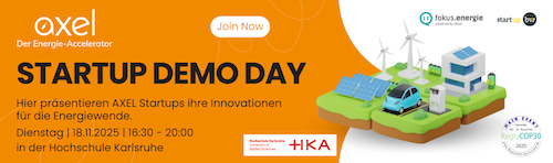 Am 18. November präsentieren Startups aus dem 15. Team Training-Programm von AXEL - Der Energie-Accelerator ihre Geschäftsideen. Acht Wochen lang haben sie dann an ihren Value Propositions und Geschäftsmodellen sowie ihrem Pitchdeck gearbeitet – und werden sich jetzt in einem Pitch vor Investoren, Partnern und Interessierten vorstellen.