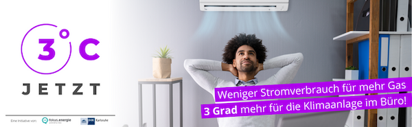 „3 Grad-Initiative“ kann unterstützen: Deshalb initiieren fokus.energie e.V. und IHK Karlsruhe die „3 Grad JETZT“-Initiative (#3GradJETZT). „Primäre Adressaten sind Bürogebäude und Geschäftsräume, aber auch Verkaufsräume, Beratungsorte, Produktionsumgebungen oder auch Ausbildungsstätten“, betont Wolfgang Grenke, Präsident der IHK Karlsruhe: „Überall, wo heute klimatisiert gearbeitet, eingekauft, ausgebildet oder auch entspannt wird.“ Weniger ist mehr: Die Initiatoren sehen diese Aktion als klares Signal zum Mitmachen, wollen Wirtschaft und Kommunen ermuntern, sich ebenfalls sichtbar einzubringen, denn viele Unternehmen befürchten durch die allgemeine Lage massive Beeinträchtigungen ihres Geschäftsbetriebs.