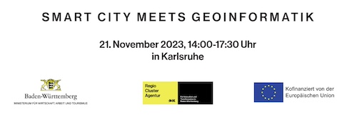 Um die vielfältigen Synergien und Kooperationsmöglichkeiten zwischen den Akteuren in diesen Bereichen zu nutzen, laden wir Sie herzlich am Dienstag, 21. November 2023, von 14.00 bis 17.30 Uhr zu unserer Cross-Clustering-Veranstaltung „Smart City meets Geoinformatik“ in Karlsruhe ein.