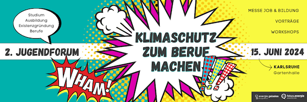 „energie.geladen“: Erneut geht es um das Thema „Klimaschutz zum Beruf machen“, denn an diesem Tag gibt es alles Wichtige zu Berufen, Ausbildung, Studium und Existenzgründung – in den Bereichen Nachhaltigkeit, Klimaschutz und Energiewende. Das Jugendforum richtet sich mit Vorträgen, Workshops und einer angegliederten Messe Job & Bildung thematisch und inhaltlich an junge Menschen, die sich mit ihrer zukünftigen Berufstätigkeit und einer anstehenden Jobwahl beschäftigen.