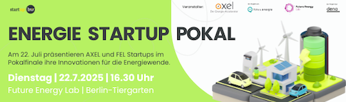 Der Energie Startup Pokal ist ein jährlich stattfindender Wettbewerb unseres Accelerators AXEL. Mit diesem wird eine große Aufmerksamkeit auf innovative Energietechnologien gelenkt. Der Ablauf ähnelt dem eines sportlichen Turniers.